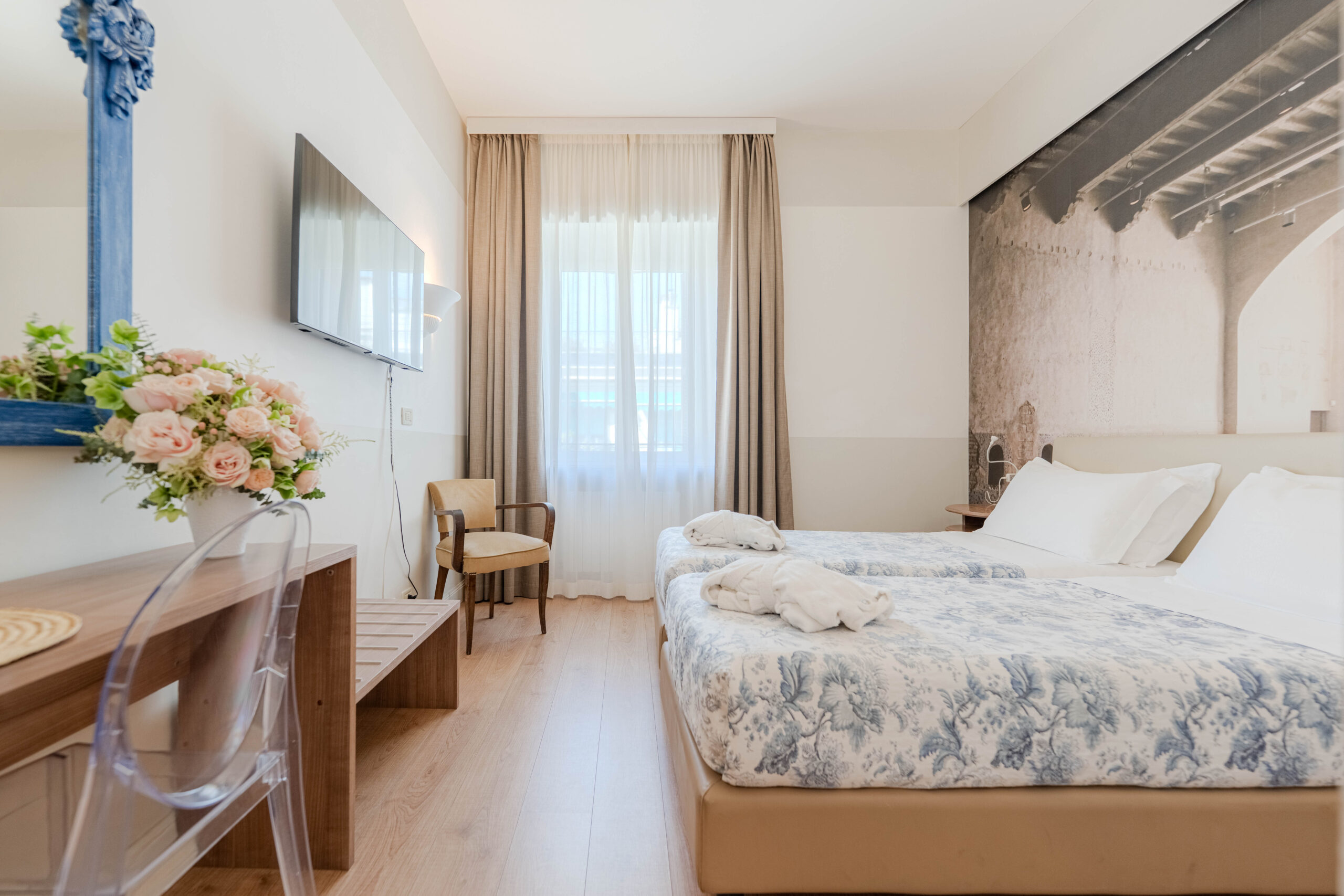 Camere senza vista mare. Con aria condizionata, cassaforte, wi fi gratuito, prodotti di cortesia in bagno, asciugacapelli, tv a schermo piatto con canali satellitari, telefono, insonorizzazione con doppi vetri.